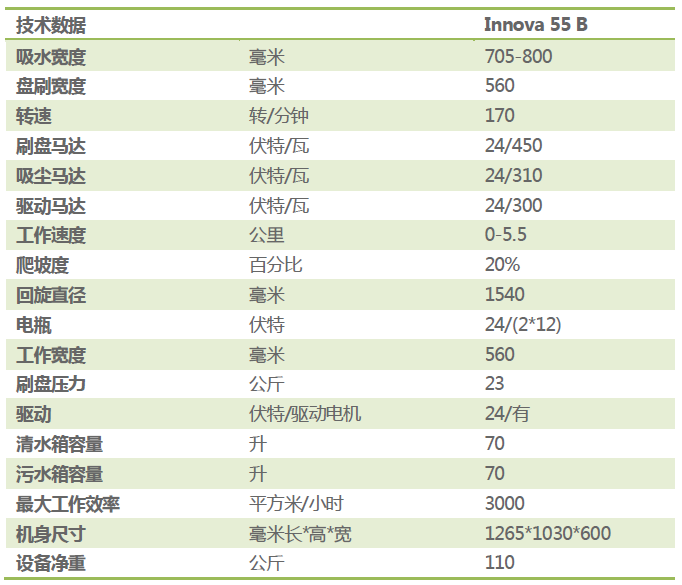 意大利COMAC高美(科邁克)駕駛式洗地機(jī)Innova55產(chǎn)品特點(diǎn):1、配備高性能出口型免維護(hù)電瓶,使用壽命更久、動(dòng)力更強(qiáng),區(qū)別于市面上其他電動(dòng)掃地機(jī),可有效延長連續(xù)工作時(shí)間。2、有效縮短清潔所用時(shí)間,完成1000㎡的地面清洗任務(wù)僅需20分鐘。3、清洗效率是傳統(tǒng)人力清潔的幾十倍,并且清潔效果更出色,一臺洗地機(jī)能節(jié)省10幾名工人的開支,有效降低了清潔成本問題,省力、更省錢!4、操作面板簡單、易懂,鑫金邦提供免費(fèi)上門培訓(xùn)服務(wù),“保潔大媽也能操作自如”。5、適用環(huán)境:小區(qū)物業(yè)、工廠車間、市政單位、商場、車站機(jī)場、廣場、公園、學(xué)校、醫(yī)院、倉庫、停車場等地。